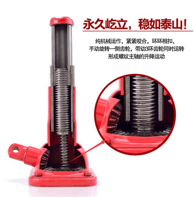 常見的汽車自帶的千斤頂,是手搖或者螺旋的。螺旋千斤頂通過齒輪傳動。千斤頂?shù)捻數(shù)牟糠忠话愣际翘淄采炜s,那個(gè)頂桿用齒輪頂上去,千斤頂?shù)捻敆U和外套筒的交界處是脆弱的地方,如何保證這里不會被扭力折斷。